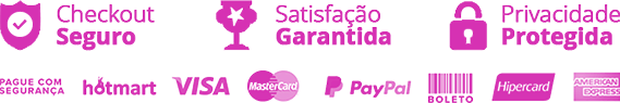 Aceitamos cartão de crédito (em até 12x), débito online PIX e boleto bancário. O processo de pagamento é 100% seguro e realizado em uma plataforma certificada chamada Cakto.